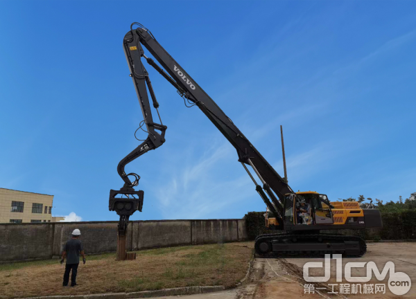 沃尔沃这款打桩机充分展示了整机和属具的完美结合,使工作效率和作业的性能更加优化,可超预期完成施工作业任务。